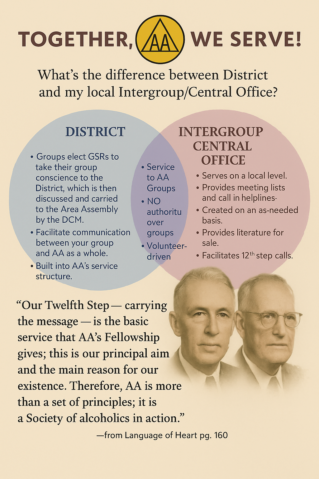 The Events Committee is the newest of Intergroups' standing committees, created May 19th 2025. Intergroup sponsors special events from time to time. District 0700 of our General Service structure also hosts special events ass do many local groups. The purpose of the Events Committee is to take the lead in organizing special events hosted by the Intergroup Committee and District 0700 and provide assistance to individual groups as needed.