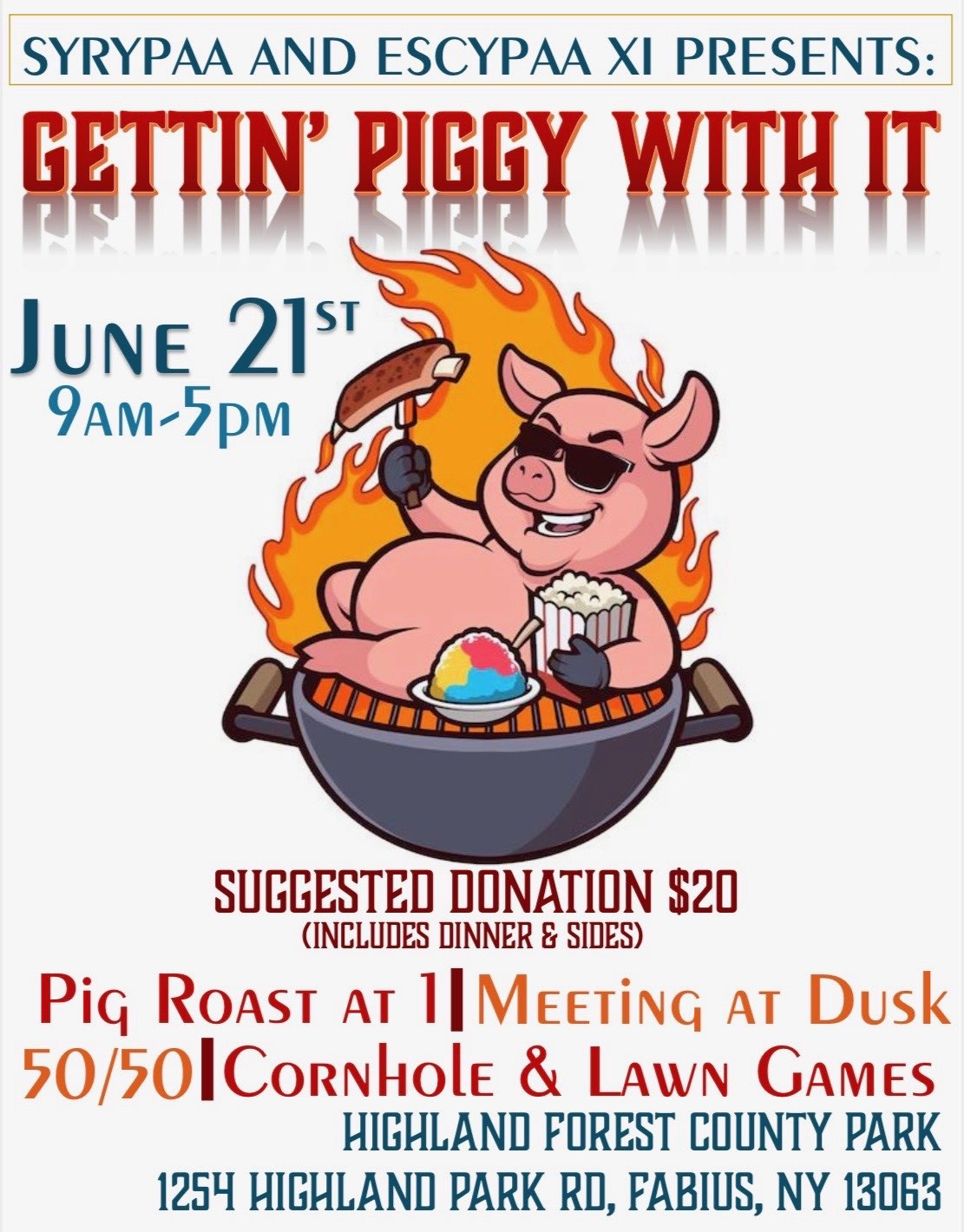 Saturday June 21st starts 9AM – Pig Roast at 1PM – Meeting at Dusk